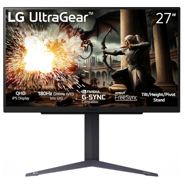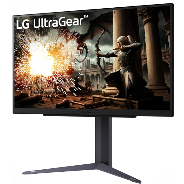 El monitor LG UltraGear 27” QHD 27GS75Q-B es perfecto para jugar y ver todo con claridad. Su pantalla mate y diseño delgado ayudan a concentrarte sin distracciones. Además, con 27 pulgadas y colores vivos, todo se ve nítido y más divertido.