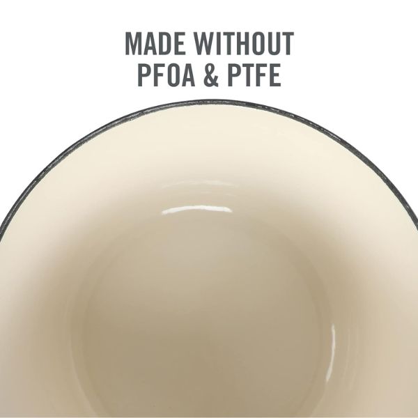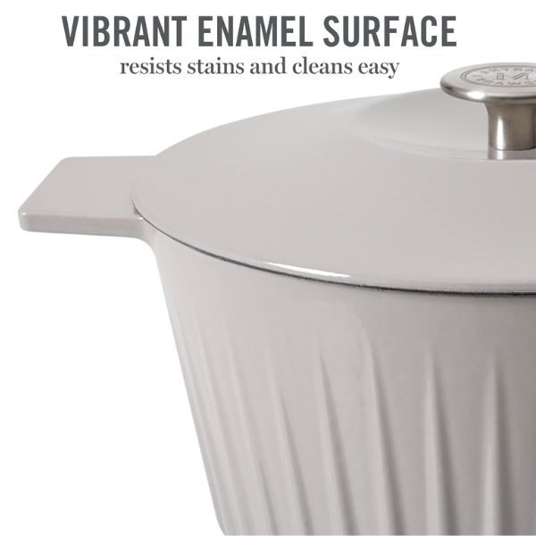 La Olla Martha Stewart Eastholm de de 2.8 o de 4.7 litros es, una herramienta de cocina de alta calidad que, con el cuidado y uso adecuados, puede durar generaciones. Por lo tanto, este horno holandés de hierro fundido es conocido por su durabilidad y resistencia, convirtiéndose en una pieza esencial que se puede transmitir a la próxima generación de cocineros en tu familia. Su construcción robusta asegura que seguirá funcionando de manera óptima durante muchos años.