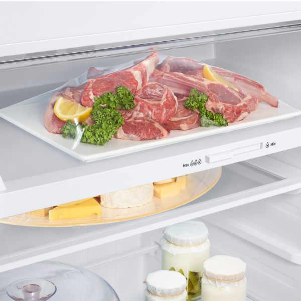 Finalmente, este refrigerador es altamente eficiente, con un consumo de energía de solo 350 kWh al año. Aparte de esto, integra conectividad con la aplicación SmartThings y un modo de energía AI, lo que permite controlar de manera inteligente el uso energético, optimizando su rendimiento.